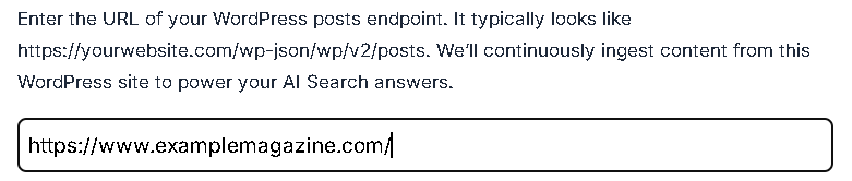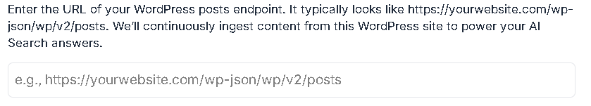 https://yourwebsite.com/wp-json/wp/v2/posts) that our system uses to ingest content.