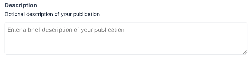 - Description: An optional, flexible text area for adding or refining a concise description that helps identify the publication.