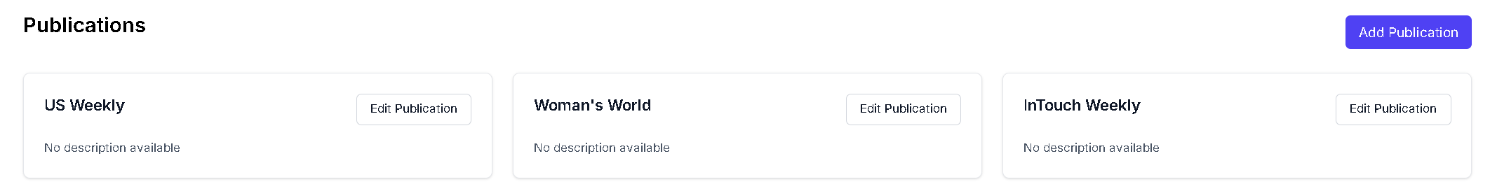 - Publication Name: 📝 Displays the recognizable title of the content source (e.g., "US Weekly," "Woman’s World," "Tech Insights Blog").